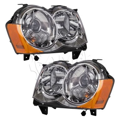 • 2008-2010 Jeep Grand Cherokee Driver & Passenger Side 2 Piece Headlight Set AM Autoparts AM-13789295
